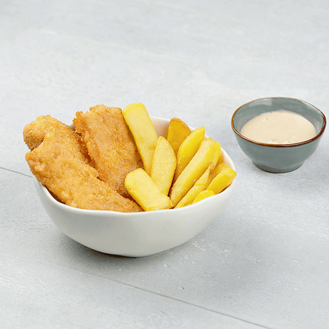 Лосось в хрустящей темпуре и картофель фри с соусом Халапеньо