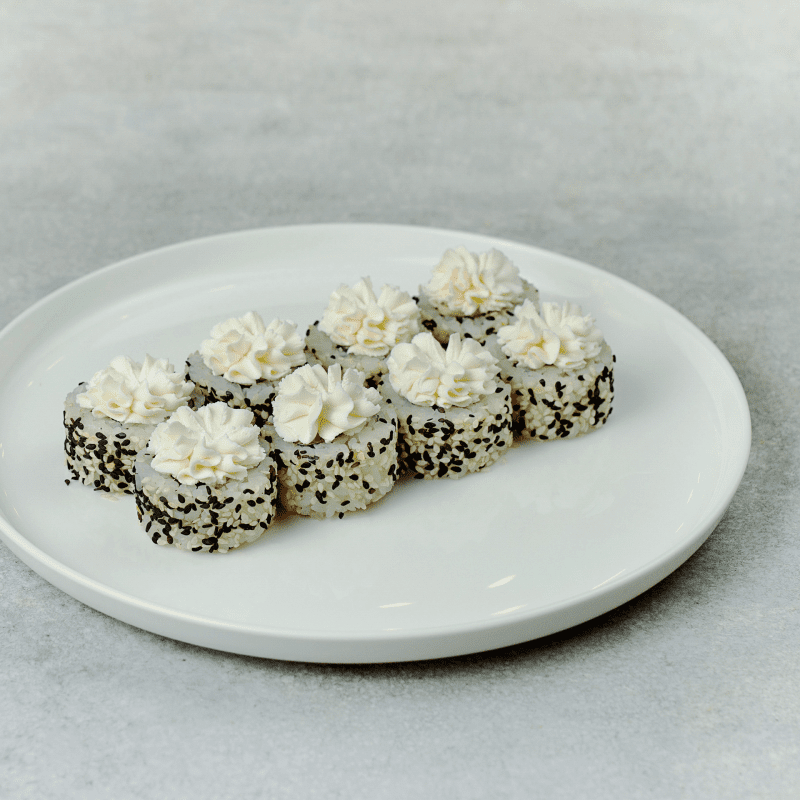 Ароматная копченая курица в сочетании с нежным сливочным сыром и хрустящим листом салата в контрастной посыпке из черного и белого кунжута