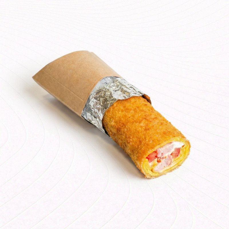 Копченая курица в сочетании с томатами, сливочным сыром и соусом Цезарь в сырной тортилье на выбор классический или в хрустящей темпуре