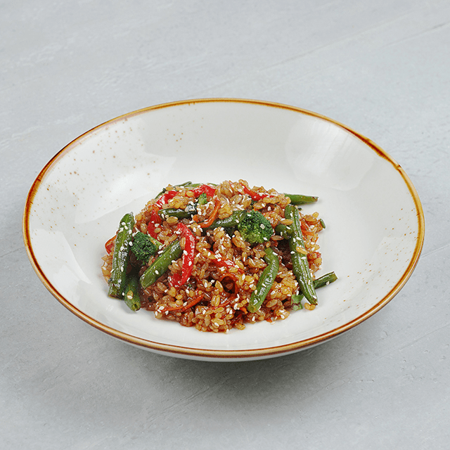 Рис с овощами с соусом на выбор:292 гРис с миксом овощей: хрустящая морковь, перец болгарский, брокколи и стручковая фасоль