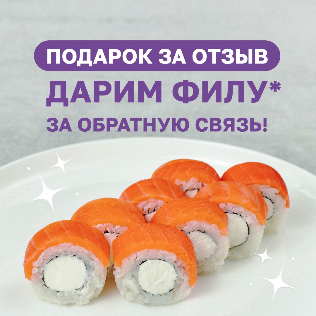 - Один отзыв равен одному промокоду на Ролл Филадельфия.