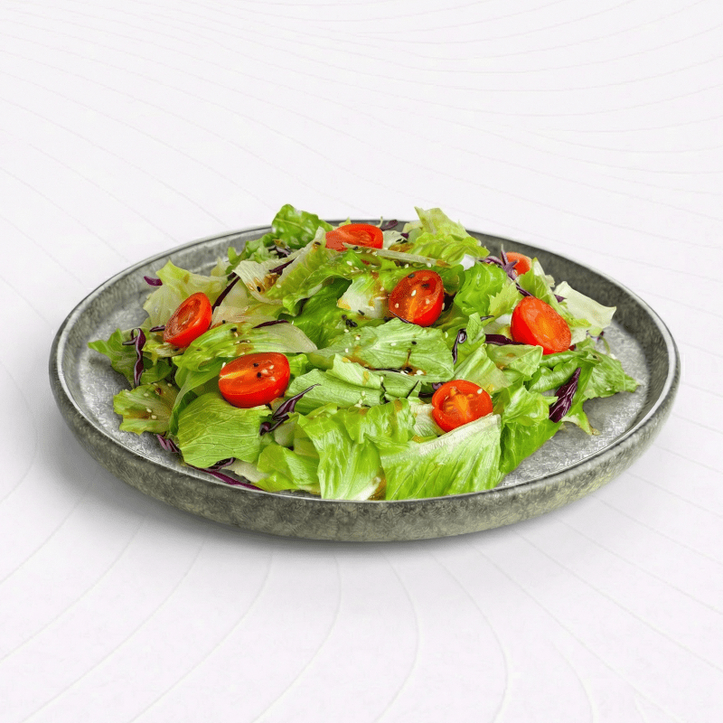 Микс салата с ароматным соусом Поке и томатами черри с кунжутом