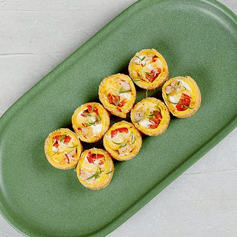 Тигровая креветка, сливочный сыр и сладкий перец в хрустящей сырной тортильи в сочетании с соусом Чили юдзу и нитей чили