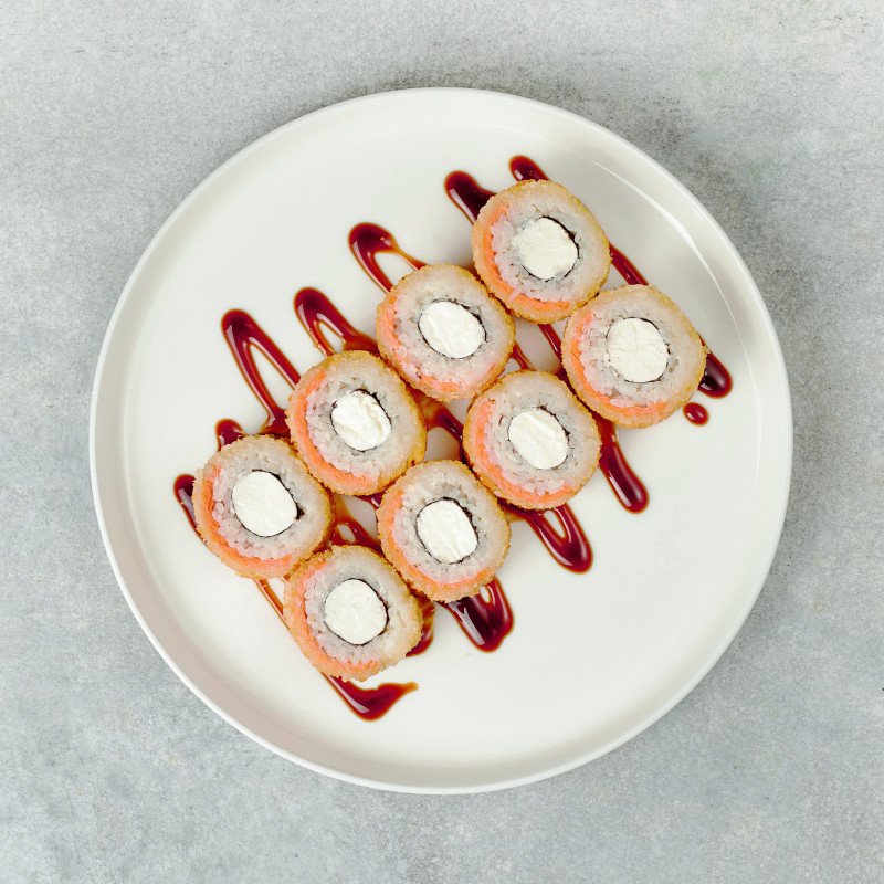 Лосось и сливочный сыр в хрустящей темпуре с соусом Унаги