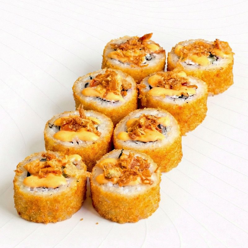 Ролл Темпура с терияки- лососем и луком фри