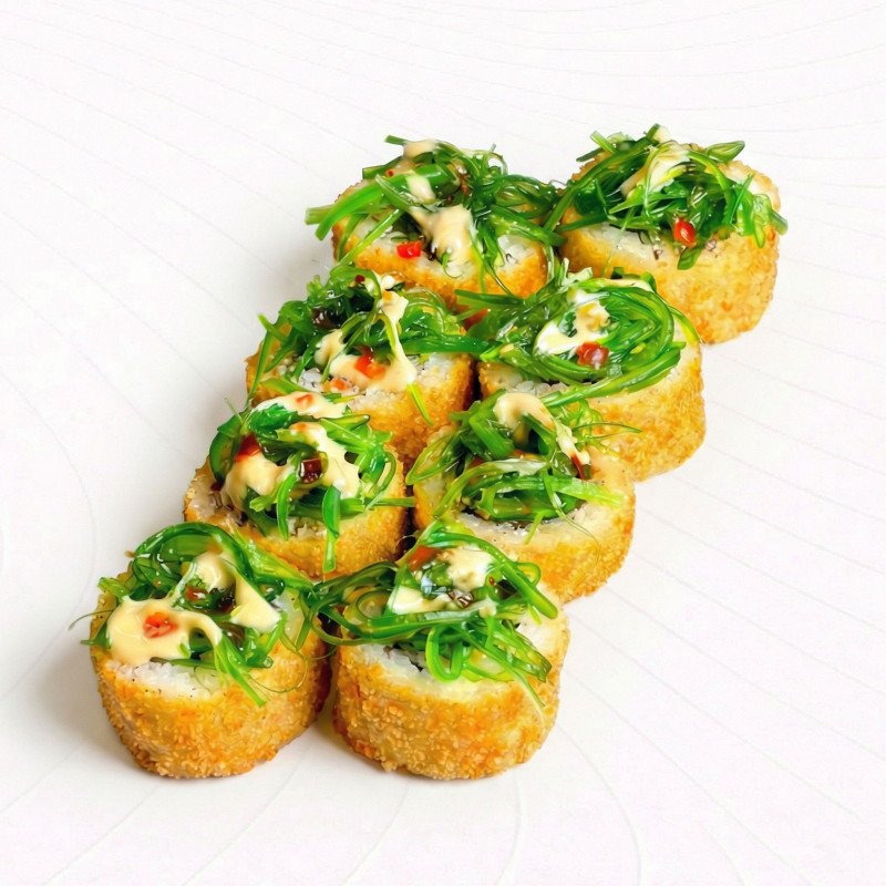 Чука и сливочный сыр в компании орехового соуса и пикантного соуса Чили-юдзу