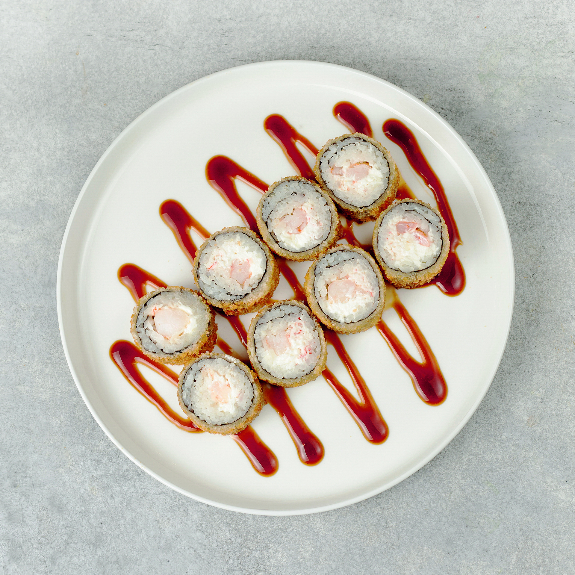 Тигровая креветка, снежный краб и сливочный сыр в хрустящей темпуре с соусом Унаги