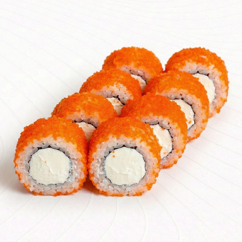 Легкий ролл с нежным сливочным сыром и яркой икрой масаго