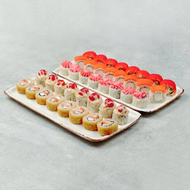 Цезарь из печи, Ролл по-корейски темпура, Филадельфия лайт, Лава с лососем, Калифорния со снежным крабом
