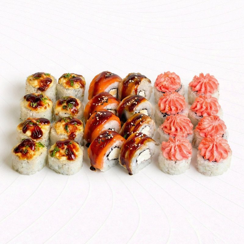 Ролл Запеченный Эби, ролл Фифти Фифти, ролл Лава с крабом